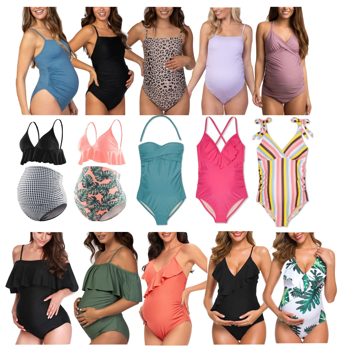 Like any clothes, you can spend as much as you want on maternity swimsuits. Personally, I can’t imagine spending a large amount on something you will not wear much. The suits I’m sharing today range from $20 to $50.